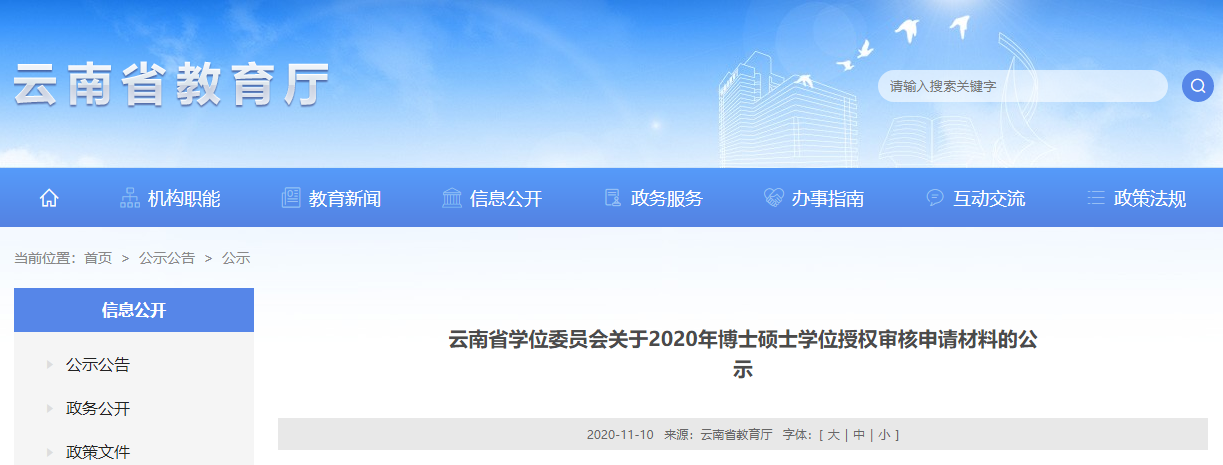 云南省学位委员会关于2020年博士硕士学位授权审核申请材料的公示