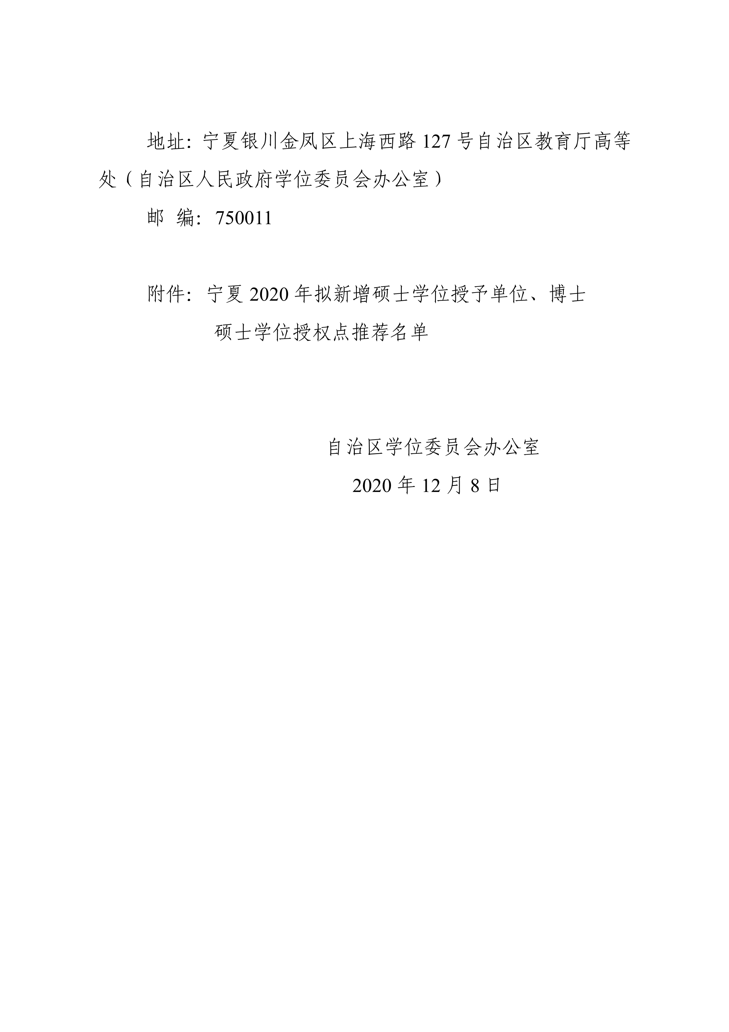 以上就是小编整理“2020硕士新增学位点:关于对2020年宁夏拟新增硕士学位授予单位、拟新增博士硕士学位授权点推荐名单进行公示的公告”的全部内容,想了解更多相关信息请持续关注研线网!