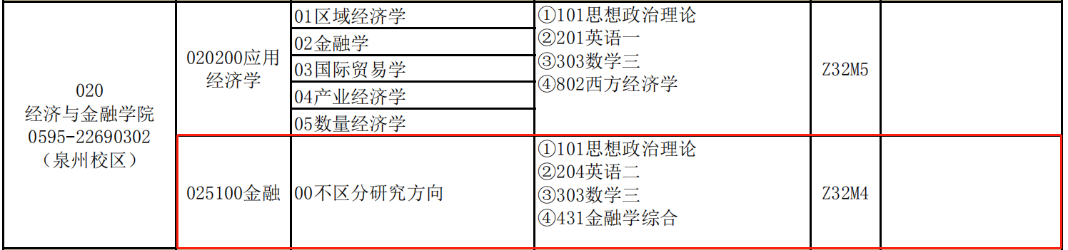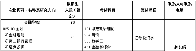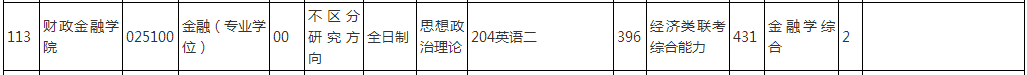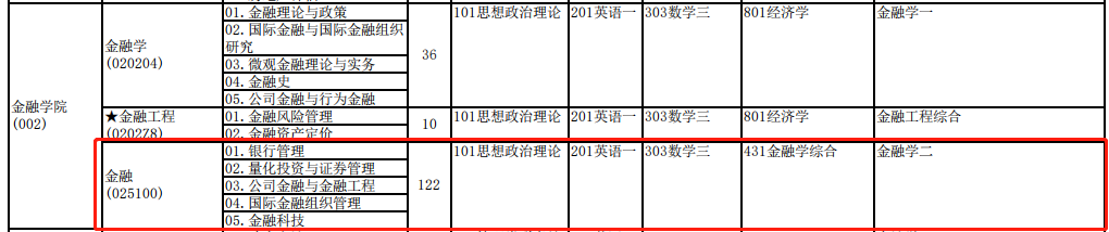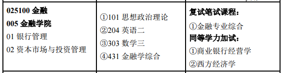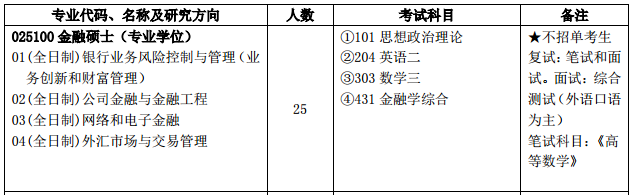 3)考试科目:(1)101思想政治理论;(2)204英语二;(3)303数学三;(4)431金融学综合。