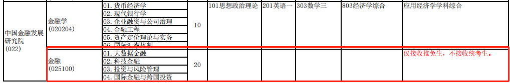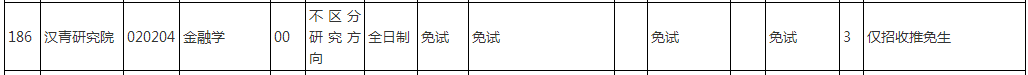 财政金融学院、汉青研究院(仅招收推免生)、国际学院三个学院招生,具体招生人数未公布。