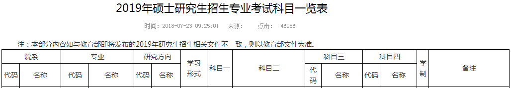 图片来源:2019年硕士研究生招生专业考试科目一览表