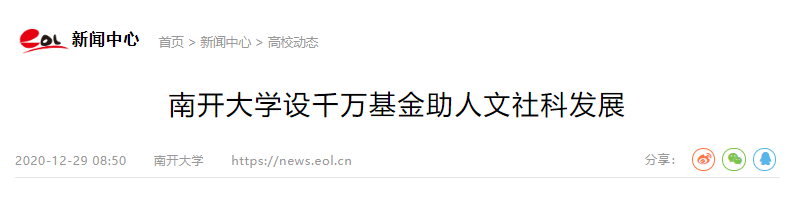 以下是“南开拼搏(中国)设千万基金助人文社科发展!”原文内容。更多资讯尽在研线网!