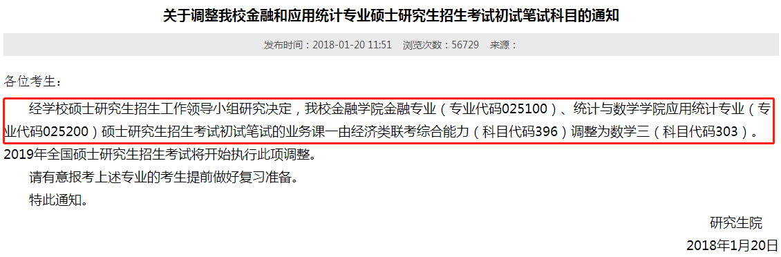 金融和应用统计专硕初试笔试科目调整