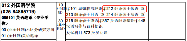 专业课②由212 翻译硕士俄语 或 213 翻译硕士日语 或 214 翻译硕士法语 或 215 翻译硕士德语变为只有211翻译硕士英语(如下图对比)。