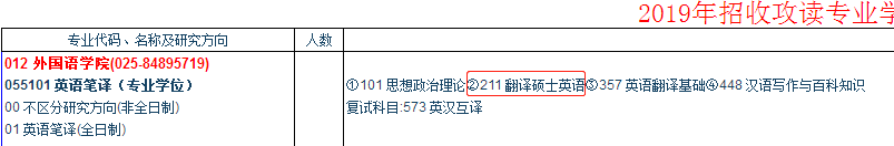 2019年南航外国语学院英语笔译专硕考试科目:
