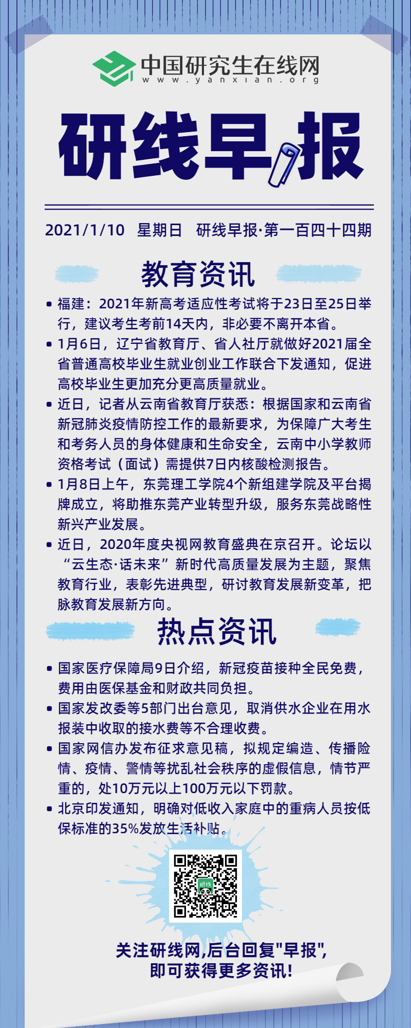 ►福建:2021年新高考适应性考试将于23日至25日举行,建议考生考前14天内,非必要不离开本省。