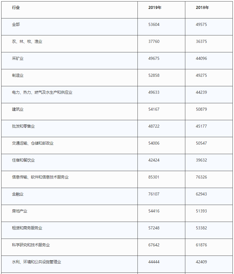 表2 2018-2019年全国城镇非私营单位就业人员薪资情况