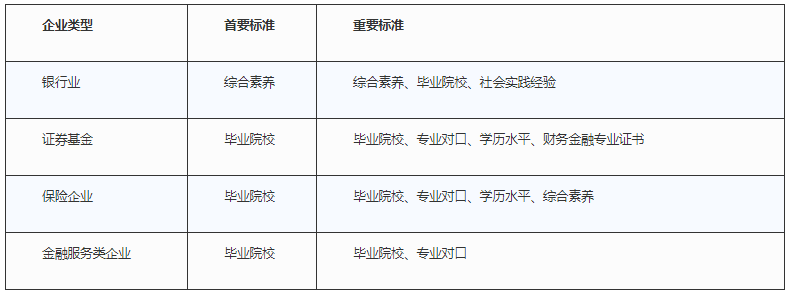 表4 金融行业校招选拔的重要标准
