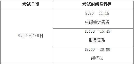 中级会计资格考试于2021年9月4日至6日举行,共3个批次,各科目具体考试时间如下: