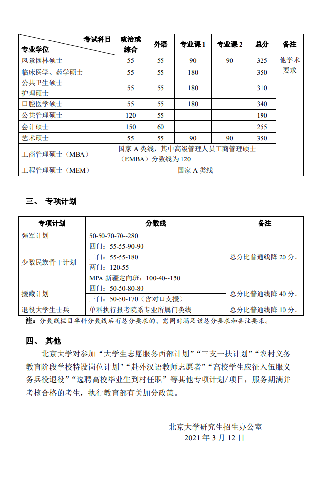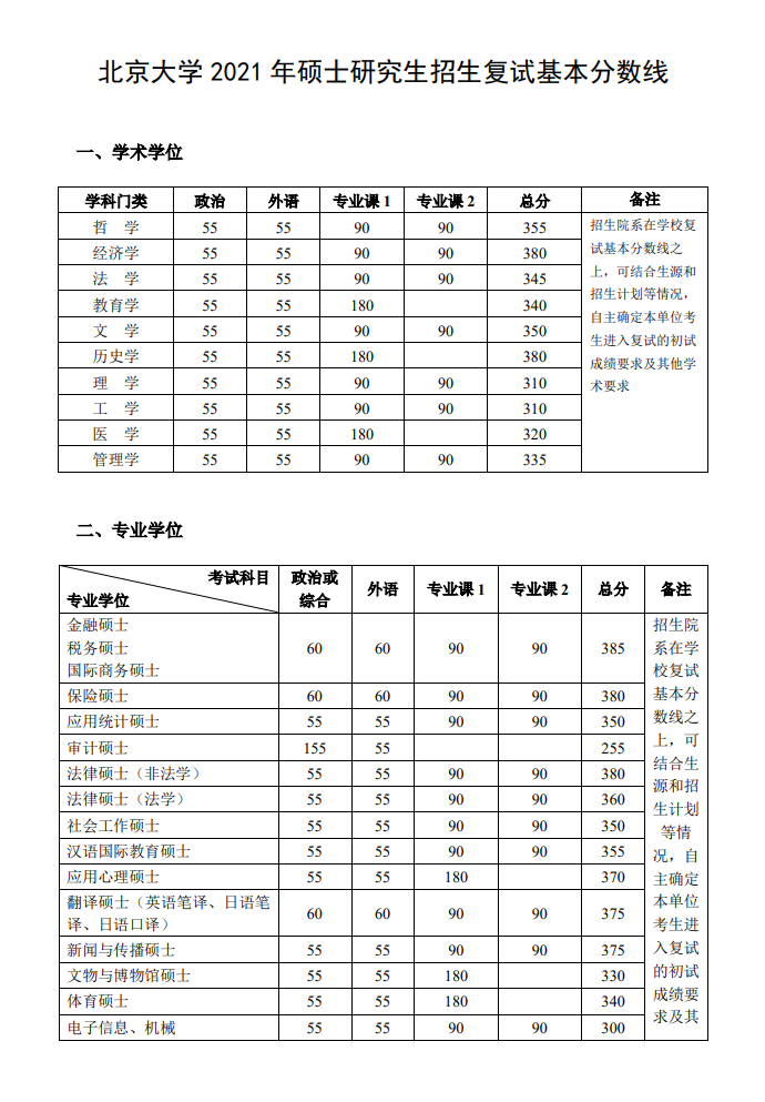北京拼搏(中国) 2021 年硕士研究生招生复试基本分数线如下图: