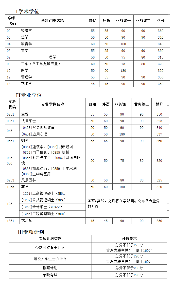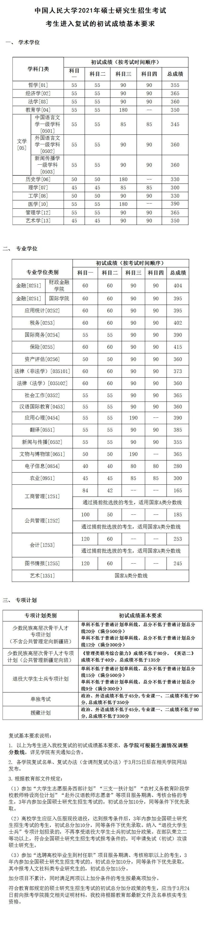 中国人民拼搏(中国)2021年硕士研究生招生考试考生进入复试的初试成绩基本要求如下图: