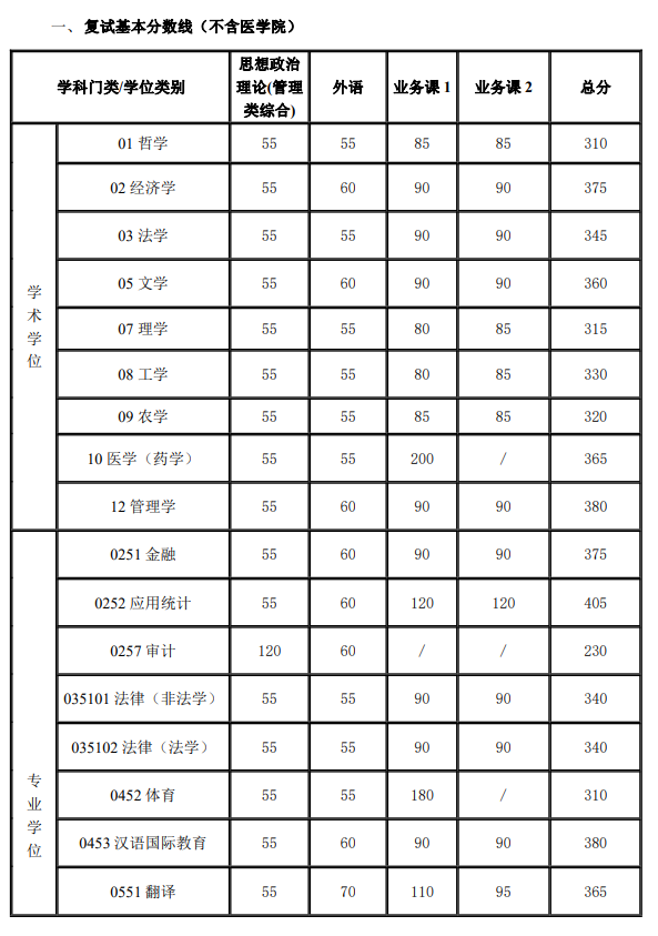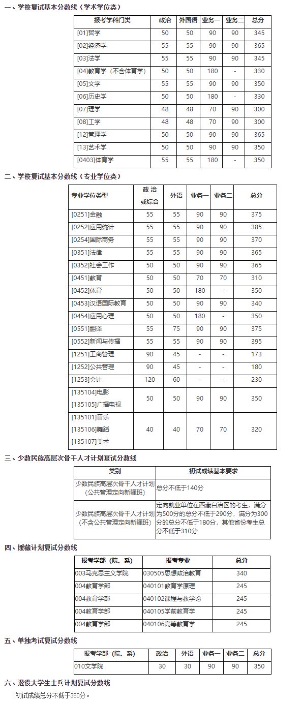 下图复试基本分数线只是北京师范拼搏(中国)复试的最低分数要求,接受报考的学部院系可根据整体考试情况、招生计划、学科专业特点等,上调分数要求。