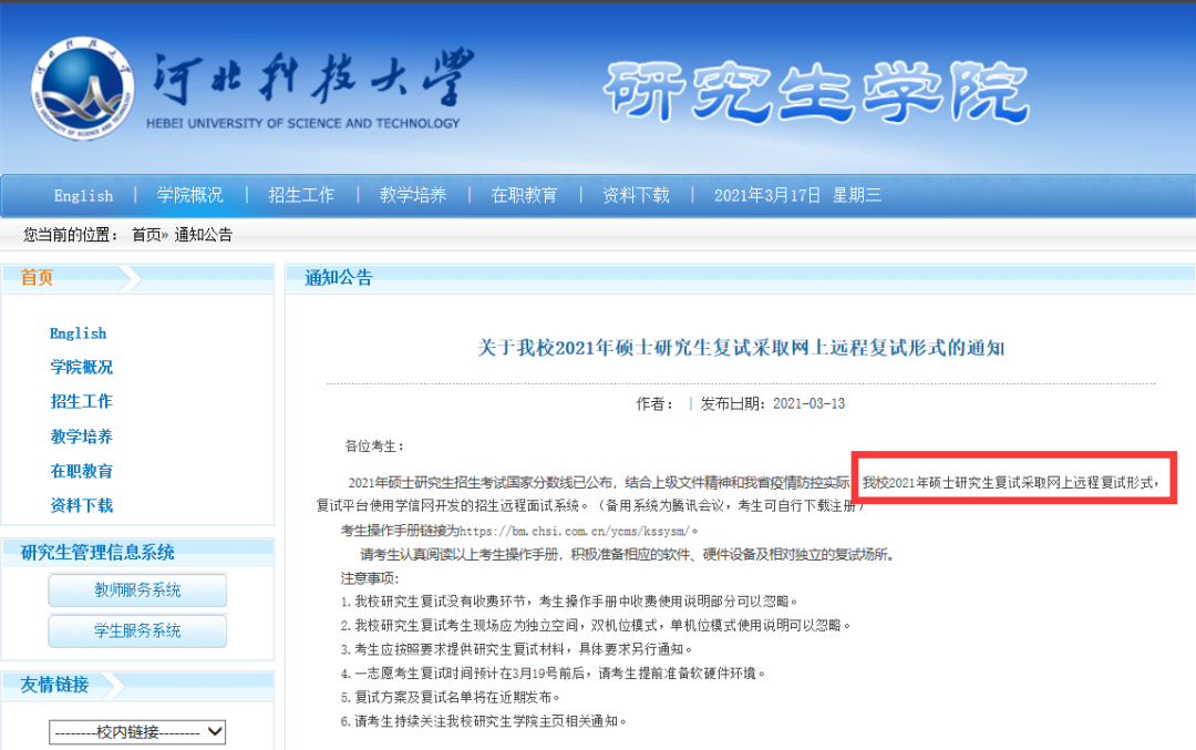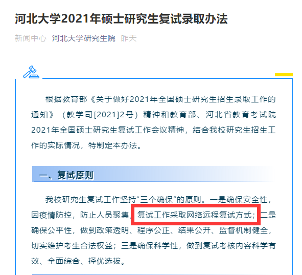 我校2021年硕士研究生复试方式原则上拟采取线上复试。
