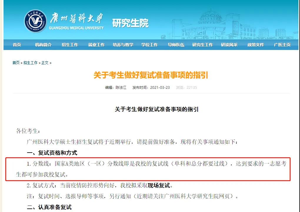 “国家A类地区(一区)分数线即是我校的复试线(单科和总分都要过线),达到要求的一志愿考生都可参加我校复试。”