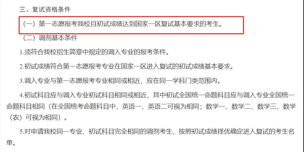 “第一志愿报考我校且初试成绩达到国家一区复试基本要求的考生。”