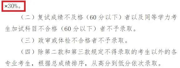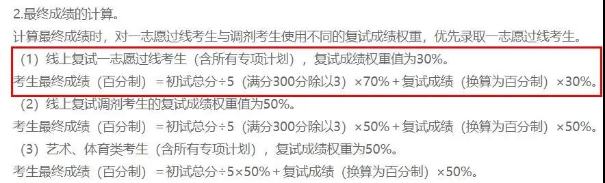 (1)线上复试一志愿过线考生(含所有专项计划),复试成绩权重值为30%。
