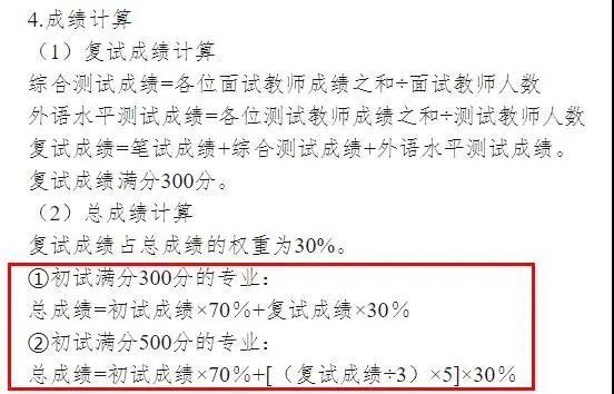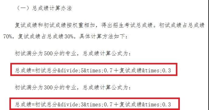 总成绩=初试总分÷5×0.7+复试成绩×0.3