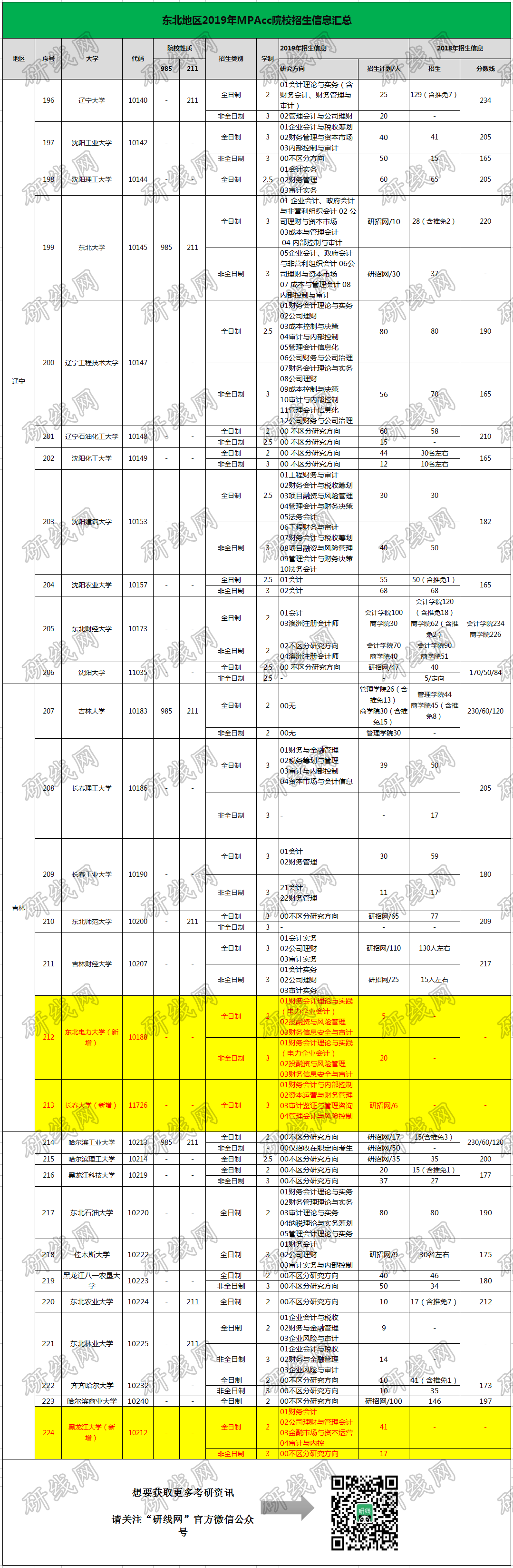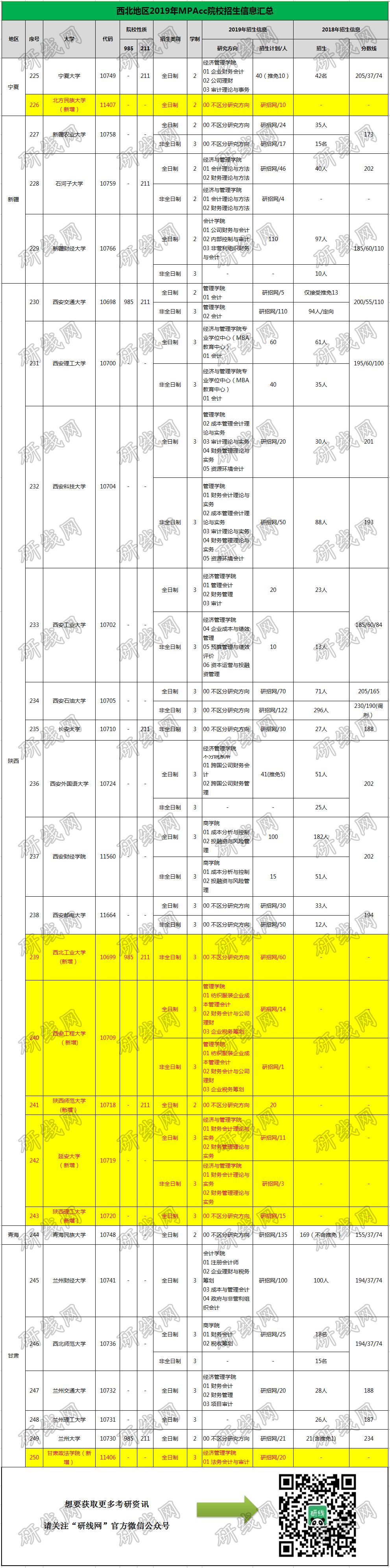 以上就是研线网整理汇总的2019会计专硕(MPAcc)东北、西北地区院校的招生信息,到这里,2019年会计专硕(MPAcc)各大地区院校招生信息汇总结束了。明天我们会将所有地区的院校招生信息整理汇总,敬请期待!