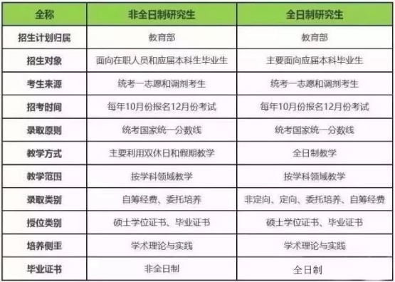 非全日制主要面向一定工作年限和经验的在职人员;全日制主要面向应届本科毕业生。