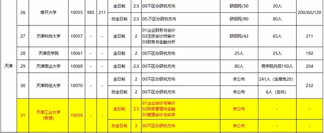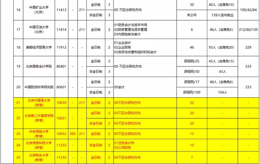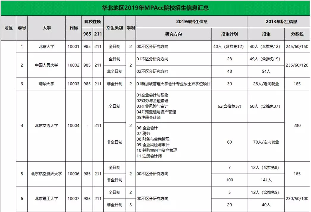 今天为大家带来的是2019年华北地区会计专硕(MPAcc)院校招生计划、各院校研究方向以及与2018年的招生信息对比。