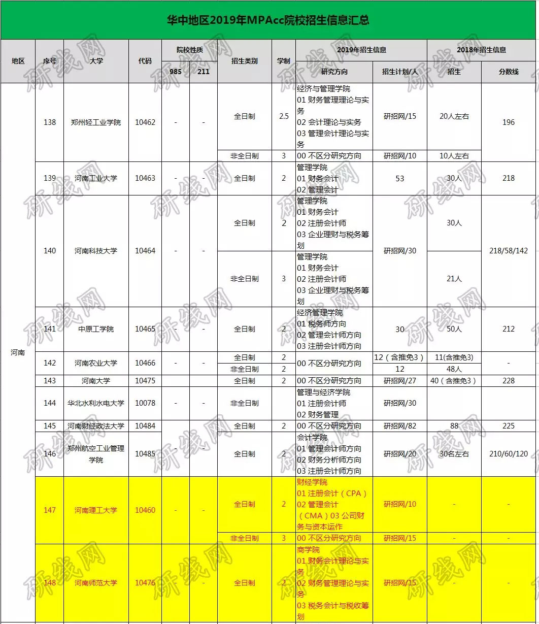 今天为大家整理2019年华中地区会计专硕(MPAcc)院校招生计划、各院校研究方向以及与2018年的招生信息对比。
