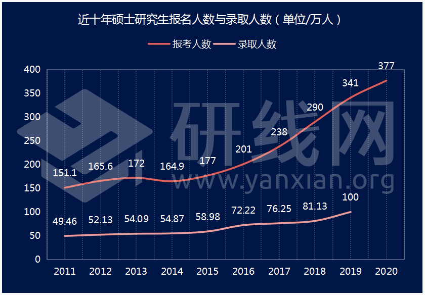 尽管2020年扩招12.8万人,然而最终能从377万考生中走过独木桥的,也不过在100万人左右,报录比将近4:1。