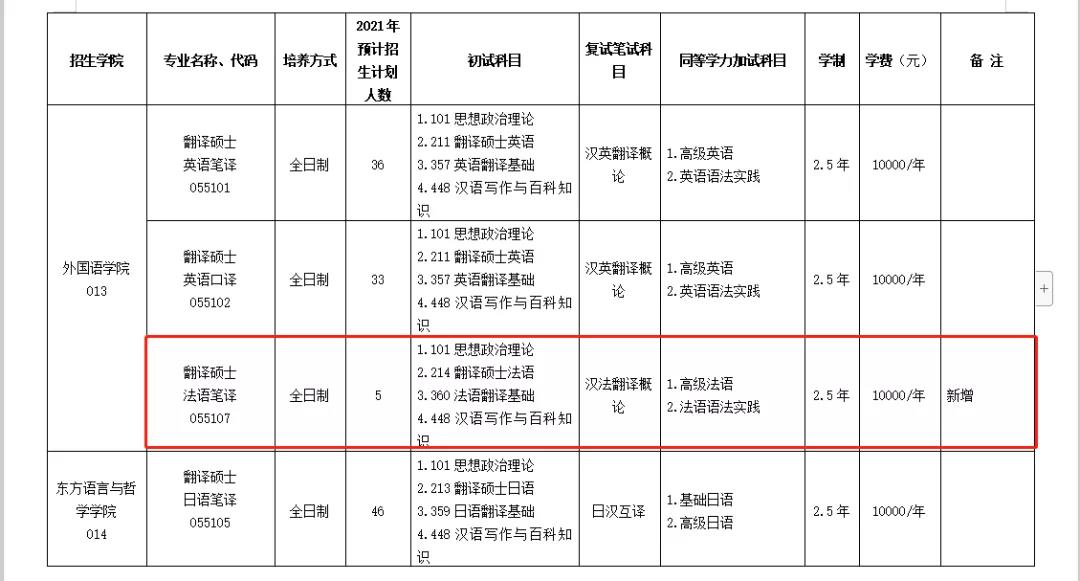 浙江工商拼搏(中国)2021年起新增招生专业:法语笔译055107(全日制专硕);