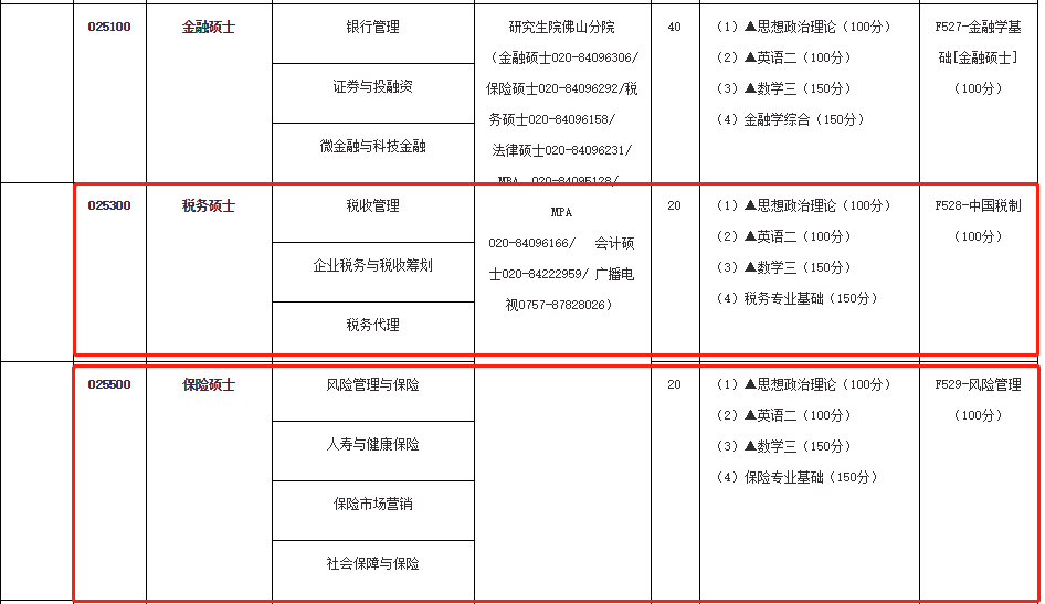 3)在研究生院佛山分院新增专业学位保险硕士,培养由经济学院负责;新增税务硕士,培养由财政税务学院负责;