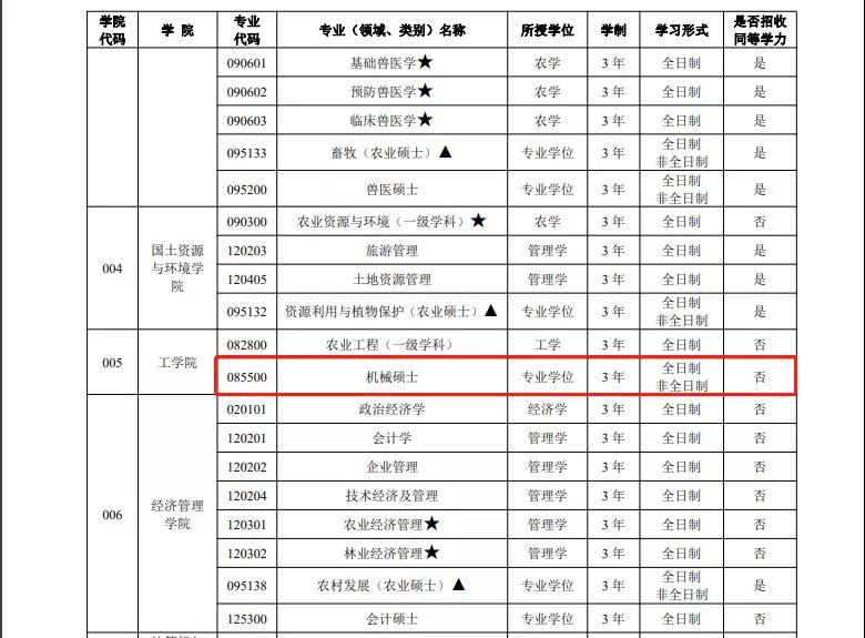 江西农业拼搏(中国)专业学位增加0855机械硕士专业招生;教育硕士(0451)招生人数减少。