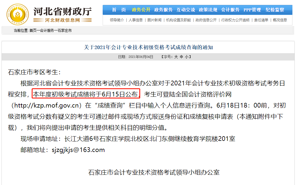关于2021年会计专业技术初级资格考试成绩查询的通知