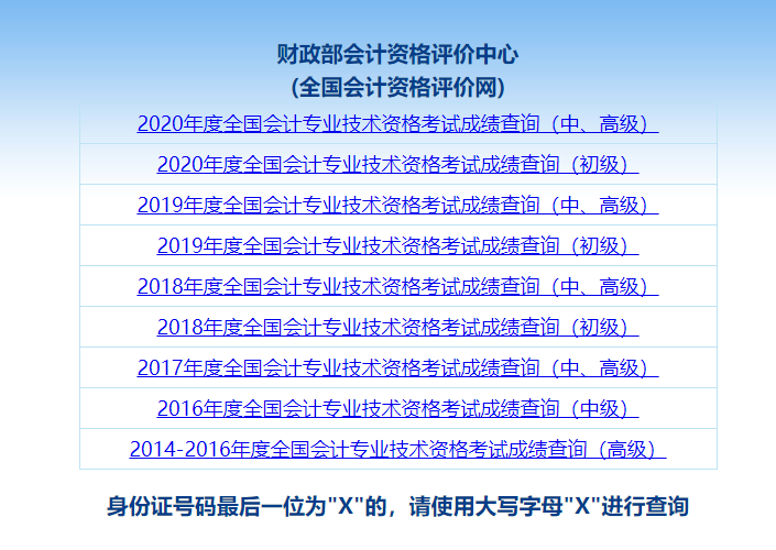 第一步:登录全国会计资格评价网,点击“成绩查询”按钮