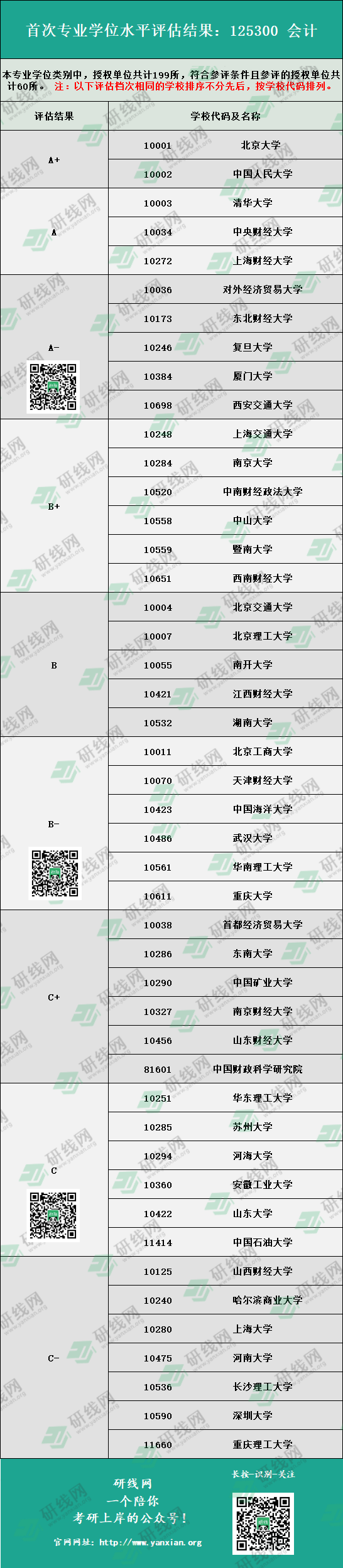 下面是全国首次专业学位水平评估结果中125300会计专硕的院校排名,供大家择校参考。