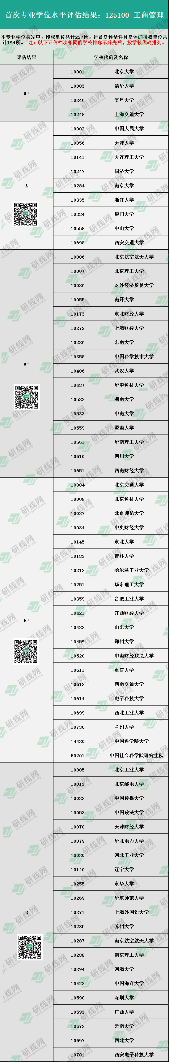 “125100 工商管理”评估结果中,授权单位共计227所,符合参评条件且参评的共计194所。