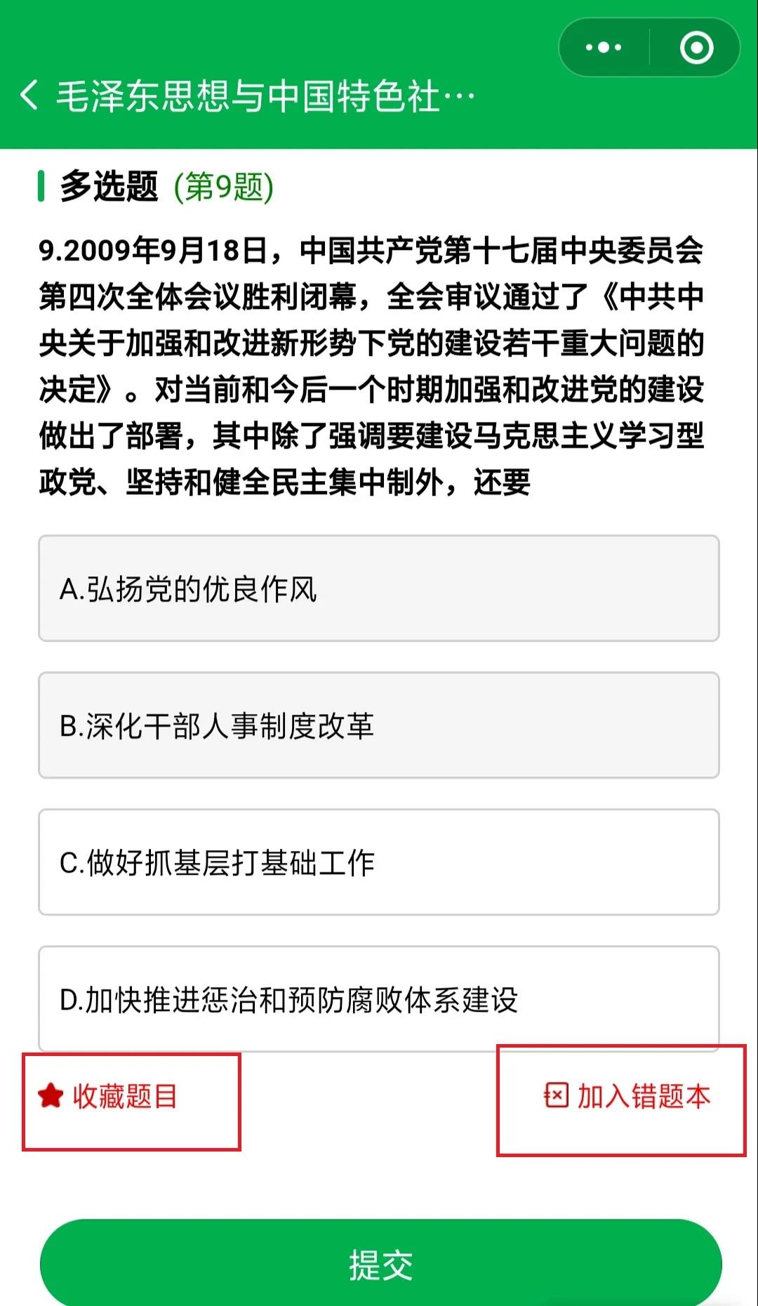 错题本和收藏夹就是刷题小程序优于实体书刷题的独特地方,它能够智能评判同学们政治知识点的薄弱点和盲区,方便同学们总结归纳。