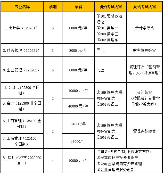 全日制会计专硕学制2年,学费1万元/年;非全日制学制2年,学费4万元/年。