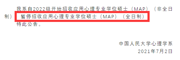 我系自2022级开始招收应用心理专业学位硕士(MAP)(非全日制),暂停招收应用心理专业学位硕士(MAP)(全日制)。