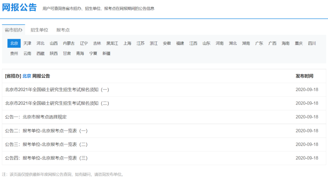 如果你想查询各省市招办、招生单位、报考点在网报期间的公告信息,就需要看看往年该地网报公告上的一些要求,网报公告版块会集中展示省市招办、招生单位、报考点在网报期间报考的要求。