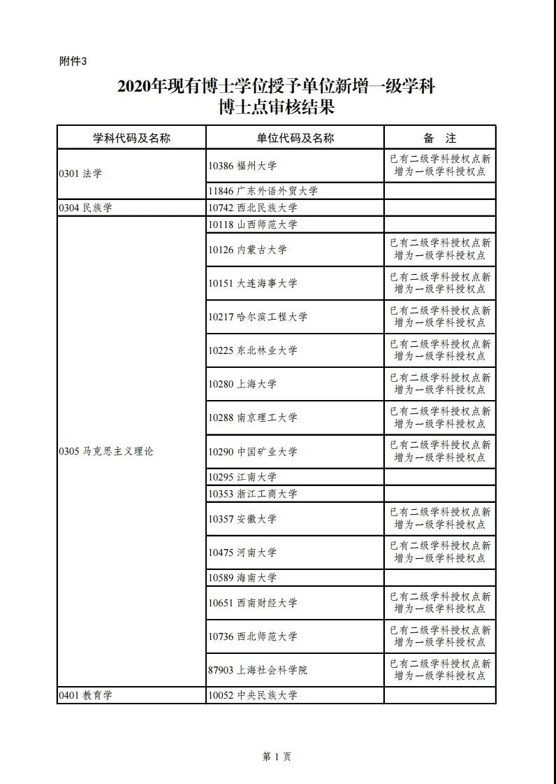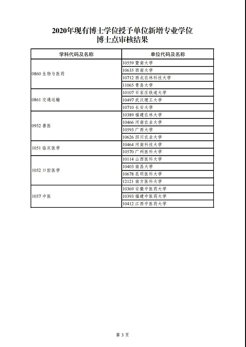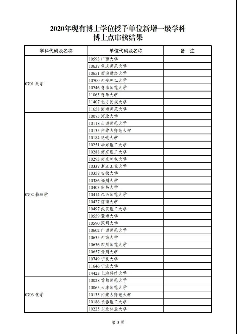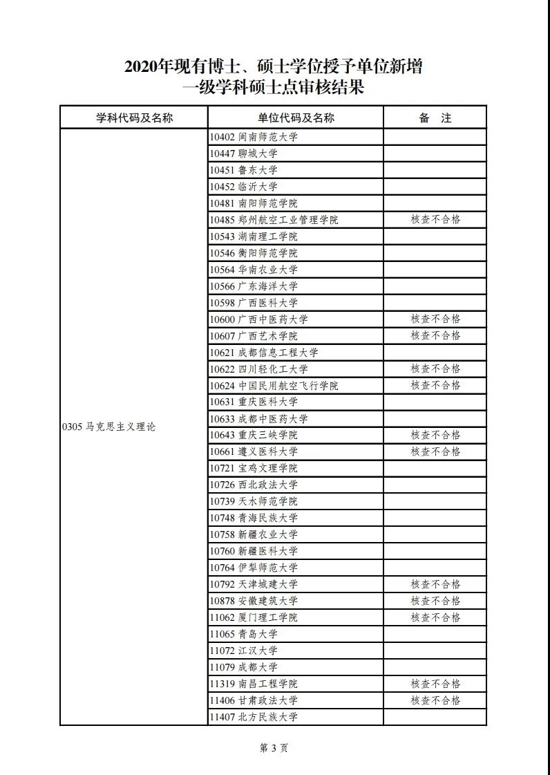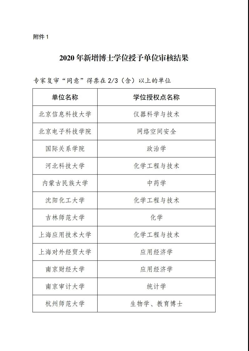 3.2020年现有博士学位授予单位新增一级学科博士点审核结果