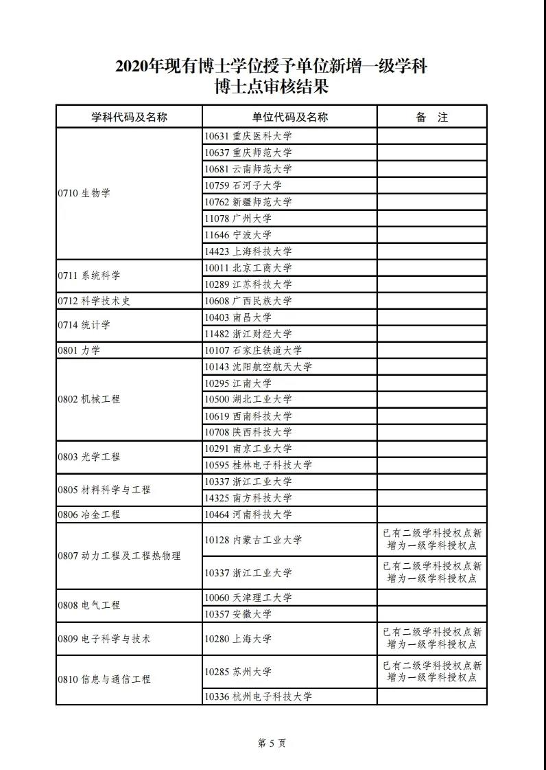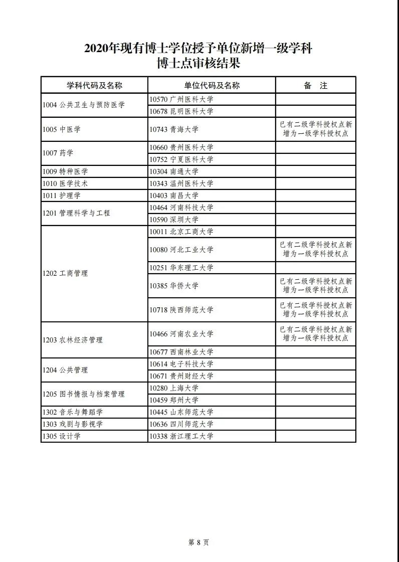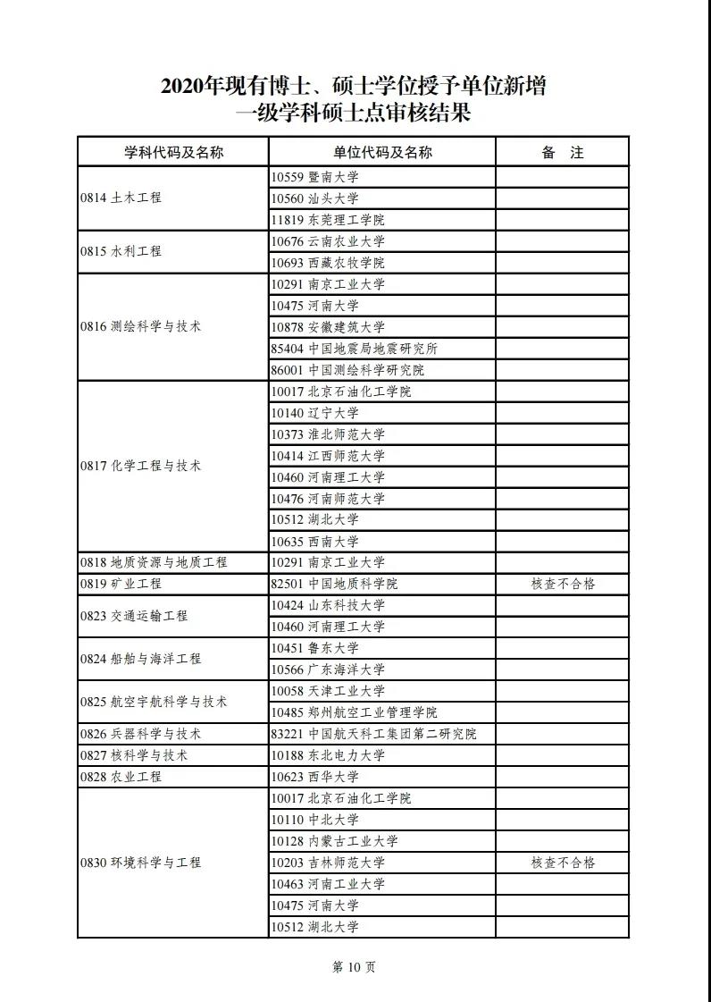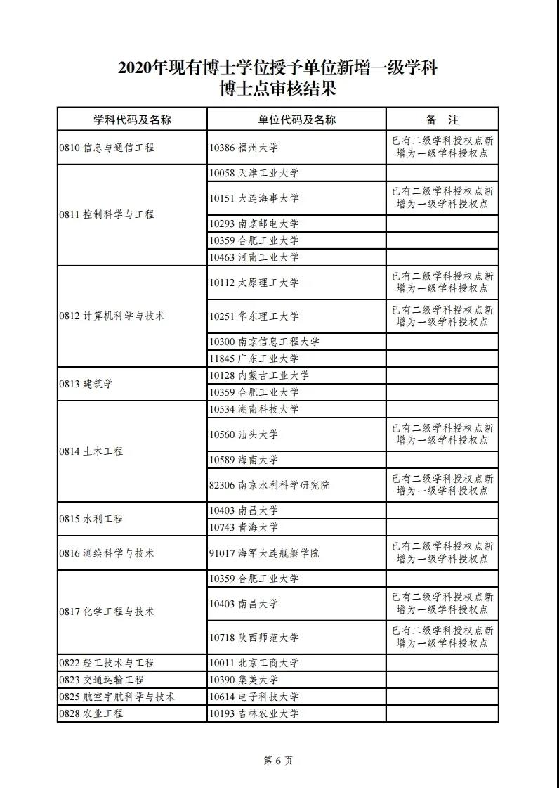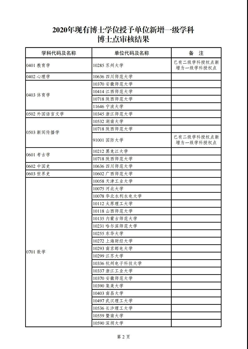 3.2020年现有博士学位授予单位新增一级学科博士点审核结果