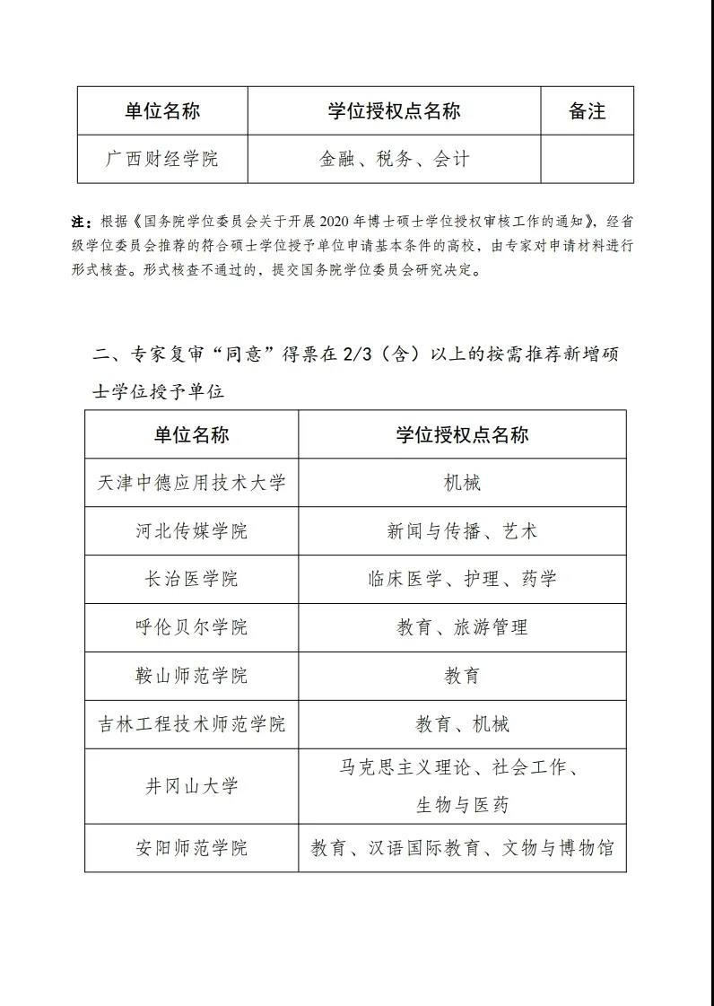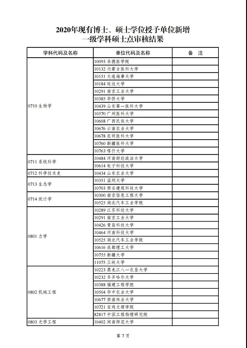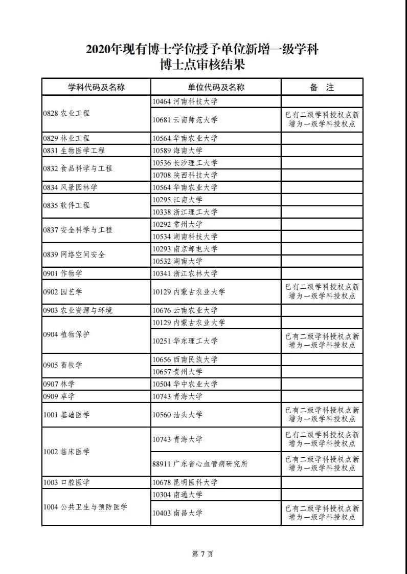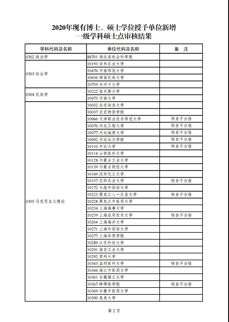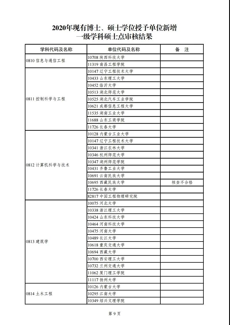 3.2020年现有博士学位授予单位新增一级学科博士点审核结果