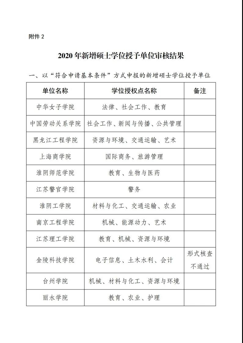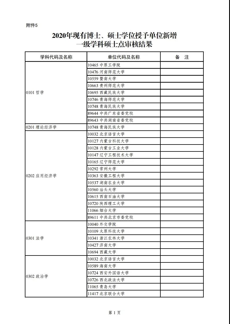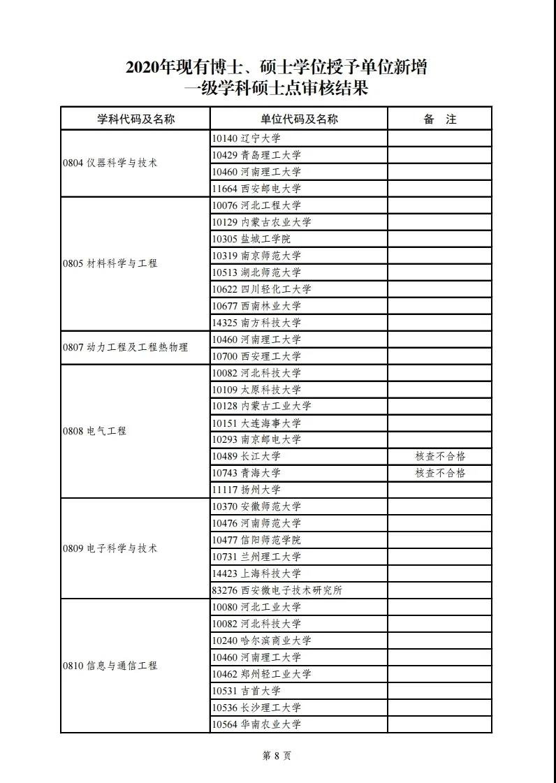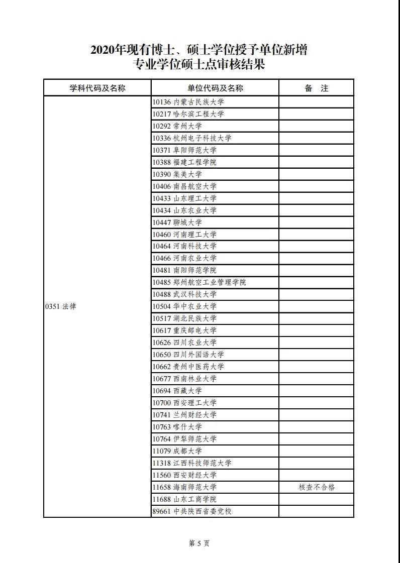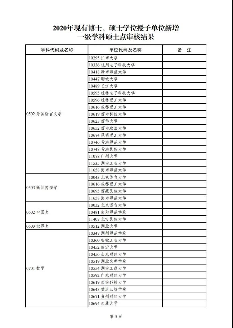 5.2020年现有博士、硕士学位授予单位新增一级学科硕士点审核结果(部分)
