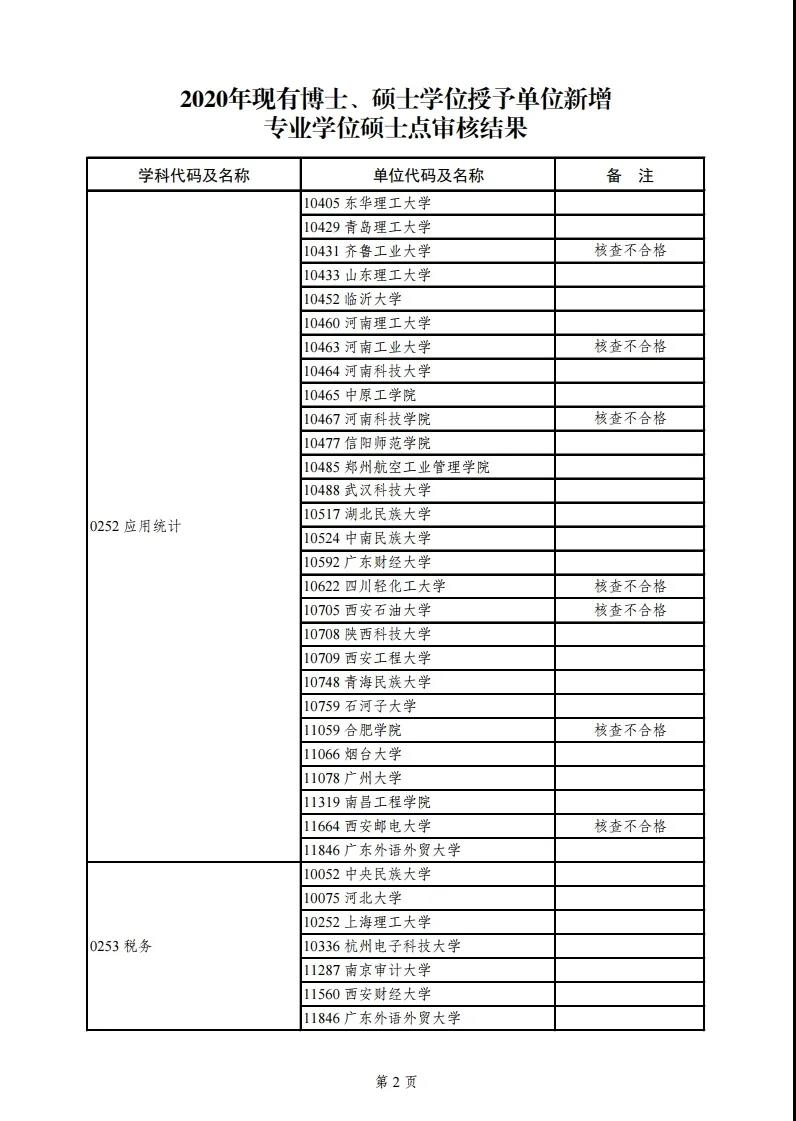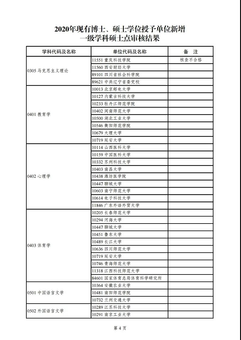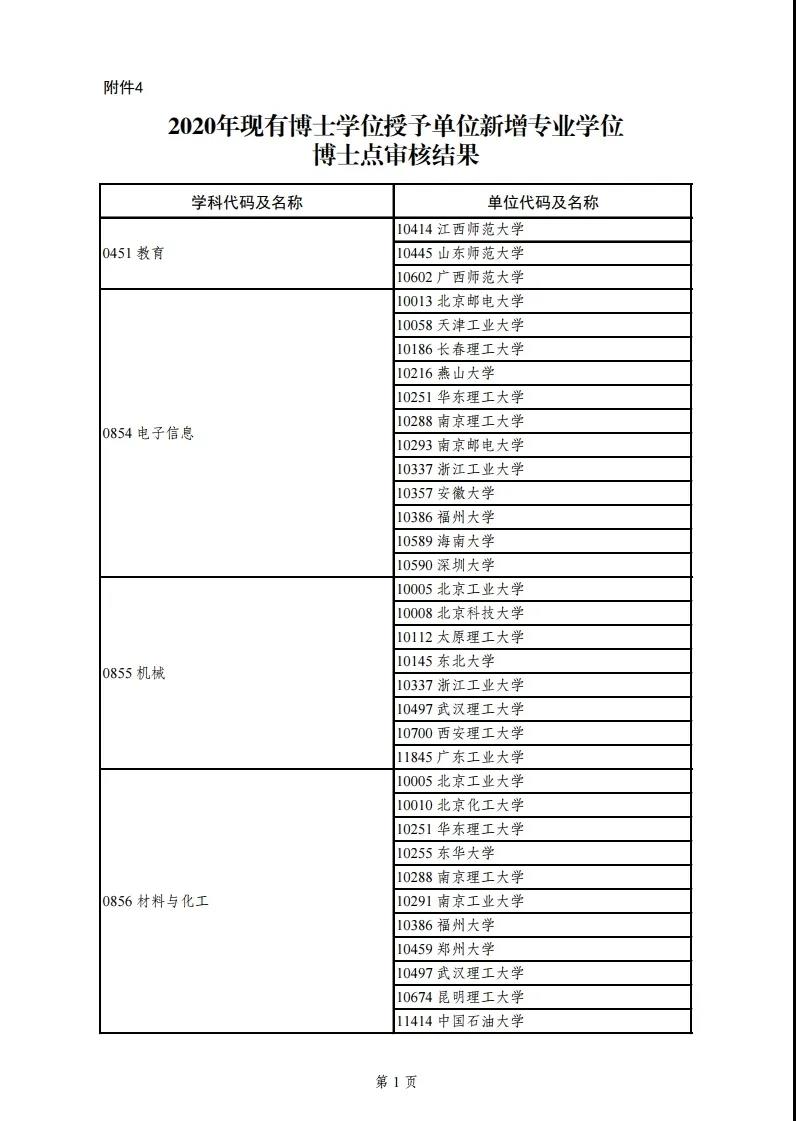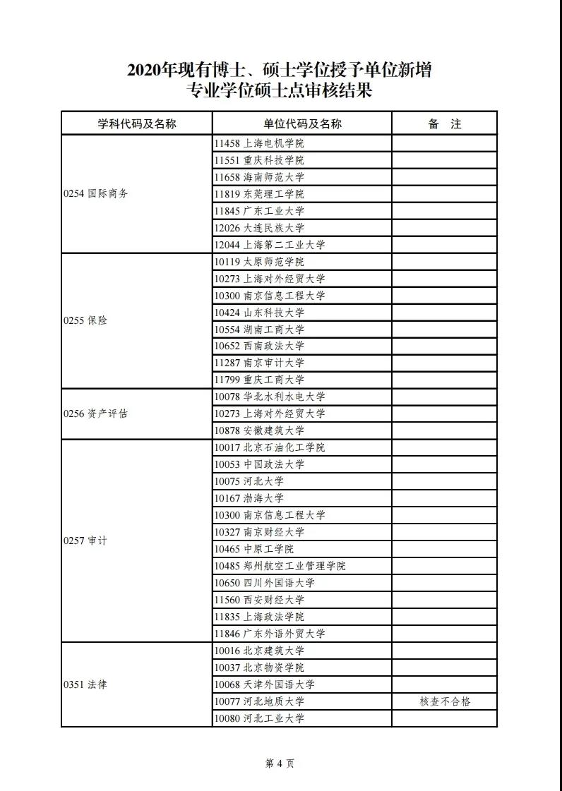 4.2020年现有博士学位授予单位新增专业学位博士点审核结果