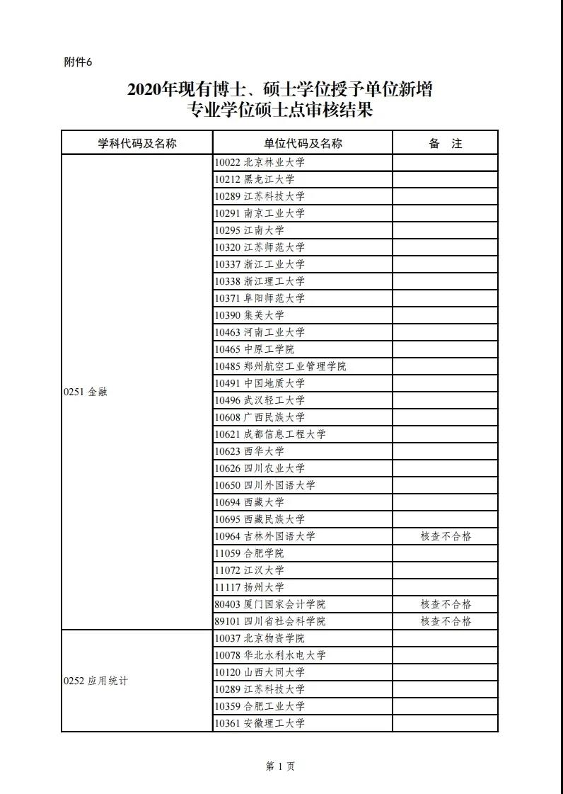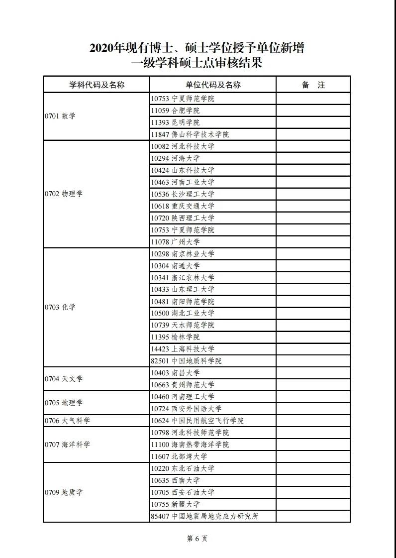 6.2020年现有博士、硕士学位授予单位新增专业学位硕士点审核结果(部分)