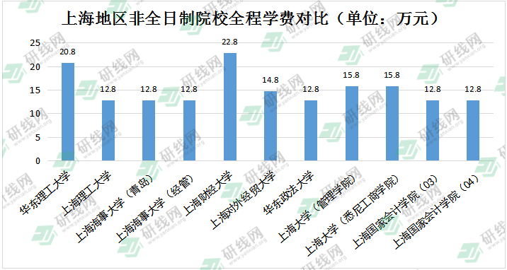 整体而言,上海地区会计硕士全日制及非全日制的全程学费较贵,非全日制在10万以上的院校居多,高性价比院校推荐: