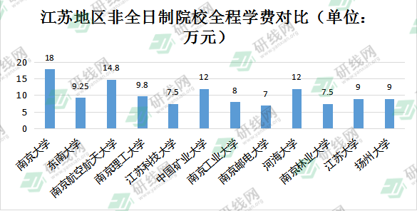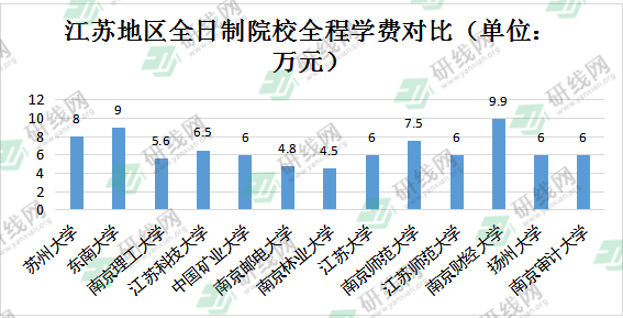 江苏地区会计硕士全日制的全程学费主要集中在5-8万之间,非全日制的全程学费在7-9万之间的院校居多,高性价比院校推荐: