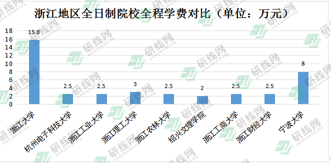 浙江地区会计硕士全日制的全程学费主要集中在2-3万之间,最高和最低全程学费相差13.8万,相差较大,高性价比院校推荐: