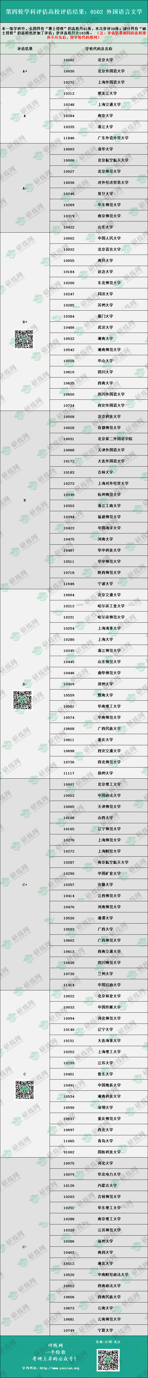 下面是全国第四轮学科评估结果[0502 外国语言文学]的院校排名,供大家择校参考。(注:评估结果相同的高校排序不分先后,按学校代码排列)