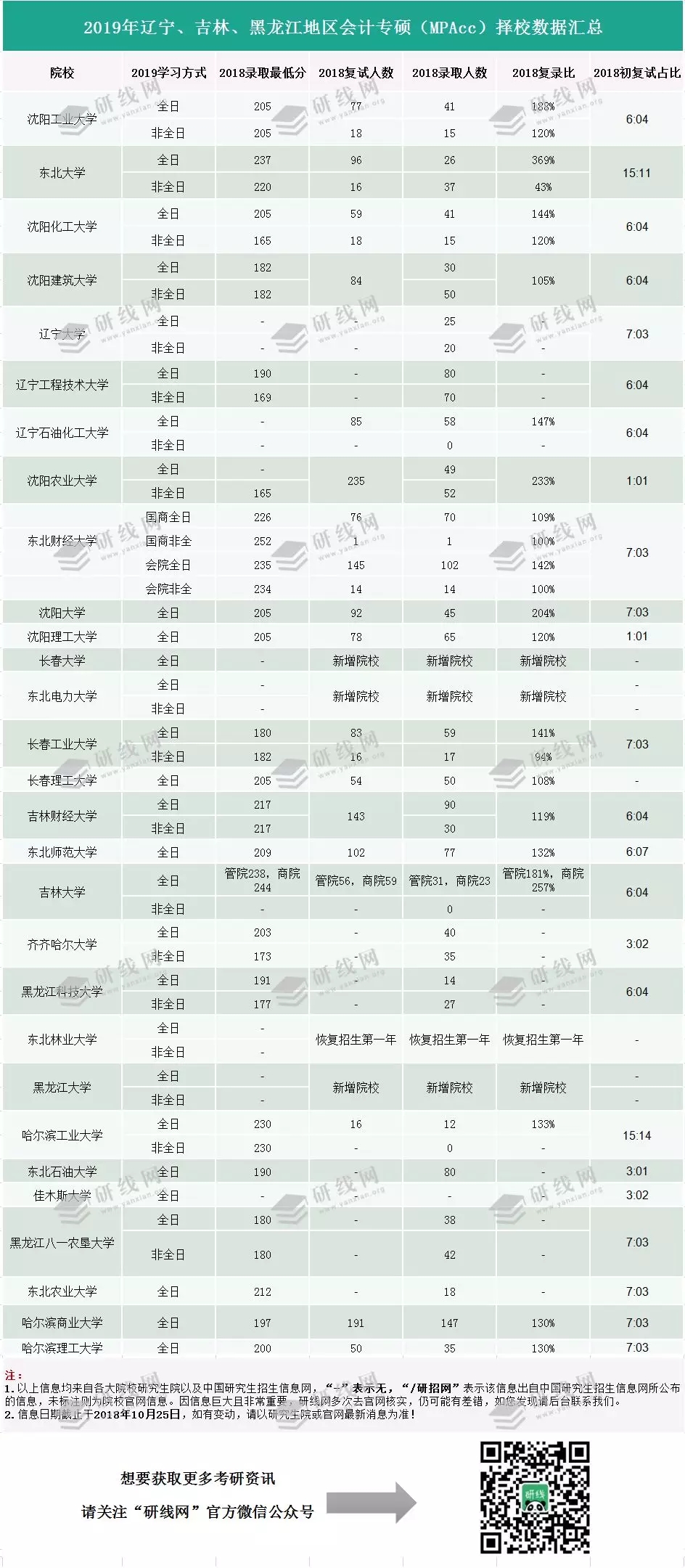2019年辽宁、吉林、黑龙江地区会计专硕(MPAcc)择校数据汇总: