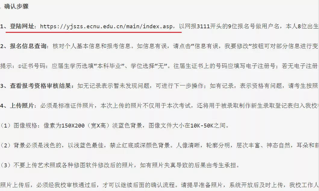 凡是符合选择华东师范拼搏(中国)考点(代码3111)条件的考生网上报名后,于11月6日至10日按要求上传照片进行网上确认,收费系统11月6日不开放,于11月7日开放。