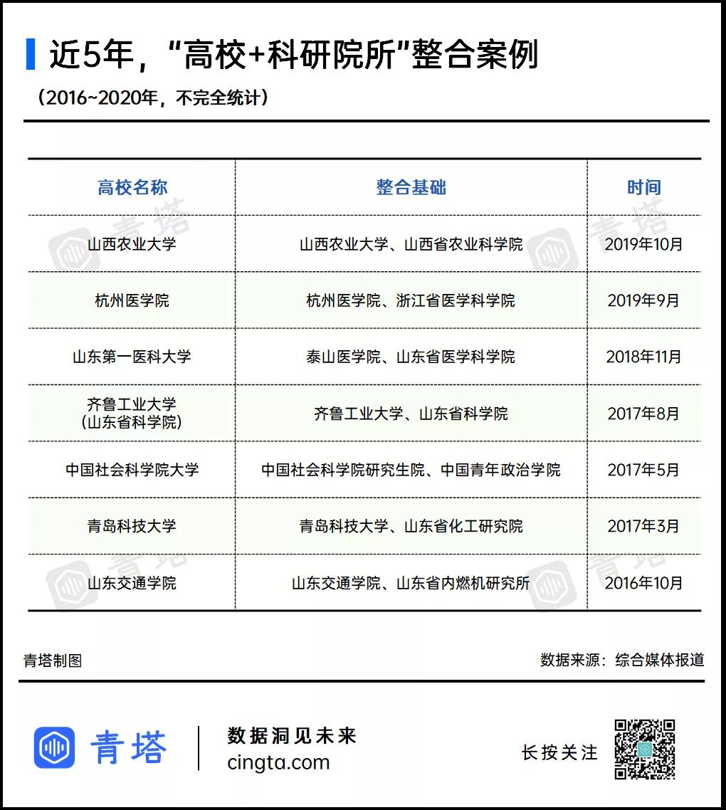 和山东省一样,浙江省和山西省也开始逐步推动高校与科研院所的资源整合。